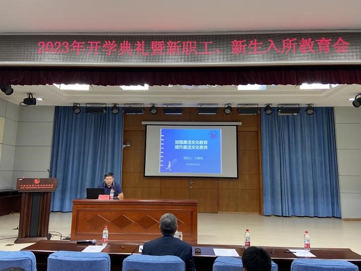 發布時間: 2023-09-05 點擊數量:161709月4日下午,我所舉行2023年新生開學典禮暨新職工、新生入所教育會,隆重歡迎150名新生入學和全體新同事入職。黨委書記、所長李山有,黨委副書記張孟平,紀委書記孔繁鈺,副所長張令心出席開學典禮,張令心主持典禮。